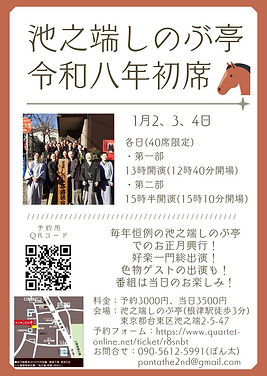 ・浅草東洋館『ボーイズ・バラエティ協会下席』、円楽一門会『両国寄席』にレギュラー出演中。