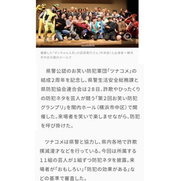 ・神奈川県警から防犯応援大使に任命され、各自治体にて特殊詐欺防止の活動も行っています。
